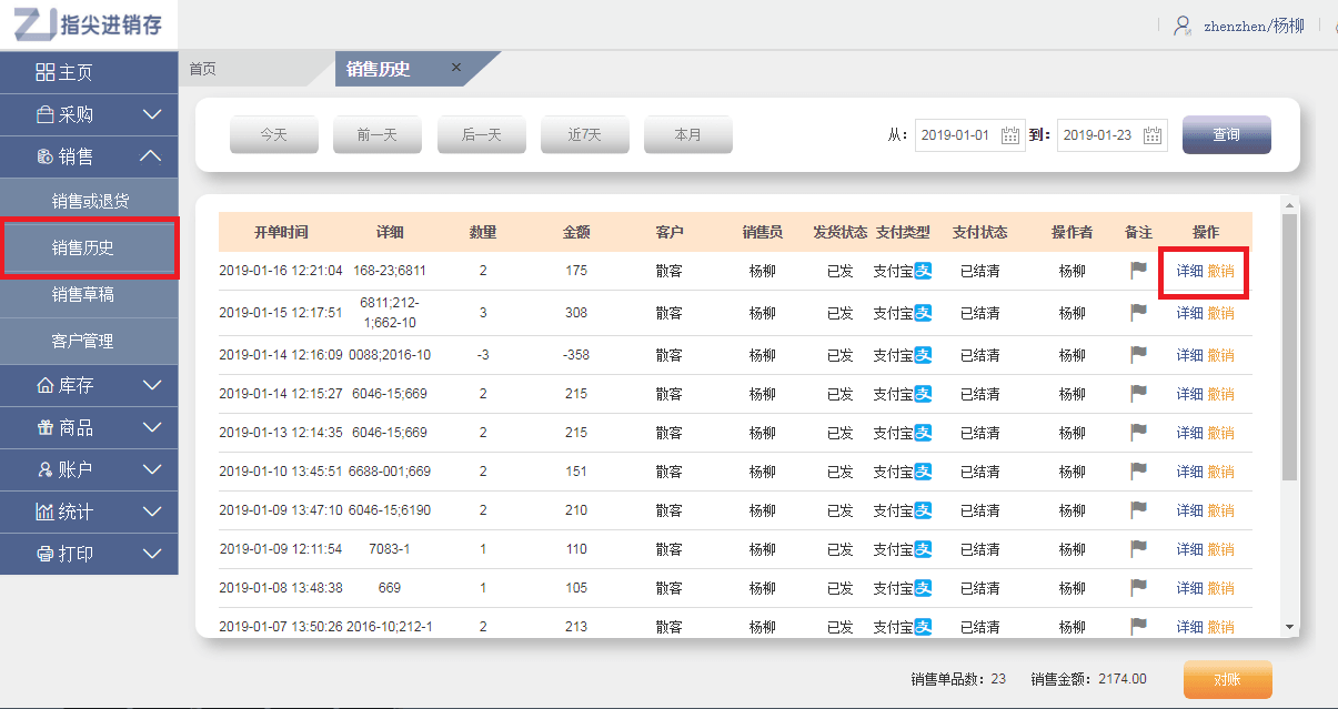 5、采购和销售的单据可以在“采购历史”和“销售历史”中查询,单据可以撤销,撤销后无法恢复,需谨慎操作。